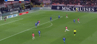 AC米兰在比赛中继续努力,但并没有改变局势。第40分钟,普利希奇有一次小角度射门,但球打得太高。第43分钟,迈尼昂扑出了对手的一次近距离射门,暂时避开了进一步的失球,但AC米兰仍旧陷入困境。