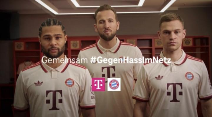 为了引起公众对网络虚假信息、暴力及仇恨问题的关注,德甲豪门拜仁慕尼黑和德国电信在社交媒体平台上联合发起一项宣传活动。活动中,拜仁球星格纳布里、凯恩和基米希共同出演一部旨在讽刺当前网络环境的短片。